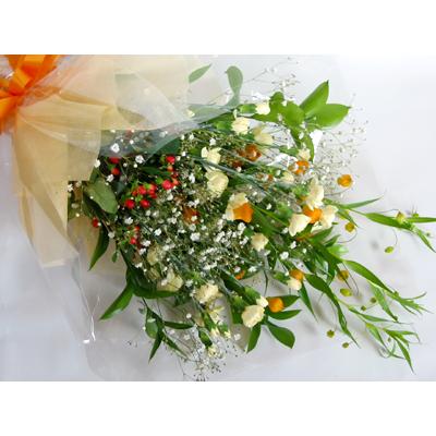 黄色系のスプレーカーネーションと赤い実の花束 Iki Cn01 花の助 通販 Yahoo ショッピング